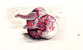 Am Samstag, 11. März 2023, findet um 13 Uhr ein Künstlergespräch mit Thomas Hammelmann statt. Das sagt die Presse: „Das … Kunstprojekt inszeniert mit morbidem Charme einen Wechsel des Blickwinkels und sucht nach einer würdevolleren Annäherung als die des Blicks auf die Fleischklumpen in der Theke des Supermarktes. Es zeigt Fotografien von Schlachtabfällen, verstörend poetische Stillleben von abgeschlagenen Hühnerköpfen und Innereien, dringt dabei auch auf das Feld einer fast schon abstrakten Bildkomposition vor. Eine surreale Ästhetik haftet auch den zeichnerisch erweiterten Bildern aus der Fleischwerbung an - den mit skurrilen Titeln versehenen Collagen. Zurück |