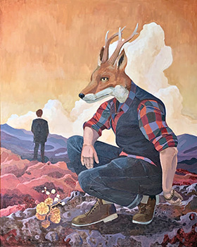 Fließend sind die Grenzen zwischen Land und Wasser, Berg und Himmel. Rätselhafte Gebäude sind mehr Andeutung als Architektur. Im „Dazwischen“, zwischen Tier und Mensch, Traum und Wachheit, Außen- und Innenwelt, oszillieren die Deutungsmöglichkeiten und verleihen den Arbeiten Wirkung und Vielschichtigkeit.