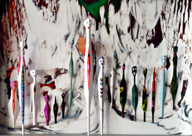 AUSSTELLUNG22.09.2011 - 15.10.2011Sigrid und Roland Schäfer Kunst und Fotografie - Fotografie, Malerei und Objekte Vernissage: Freitag, 23. September 2011, um 19 Uhr Öffnungszeiten der Galerie: Das sagt die Presse: "Mit viel Fantasie nutzt Roland Schäfer Fundsachen aus Natur und aus dem Abfallkorb seiner fotografierenden Partnerin, um Neues daraus zu schaffen. Seine stilisierten Nadelbäume, in Papier eingeschnitten und nur sanft aufgebogen, erinnern an den Minimalkünstler Günther Uecker. Anderes, wie der "Aufmarsch der Greise" oder mehr noch seine "Dämmerung", könnten Kostüm- oder Bühnenbildentwürfe fürs Theater sein. Wie weit Roland Schäfers Fantasie den Rahmen des Üblichen sprengt, zeigt am schönsten seine Installation "Insektenflucht", die in kindlich-verspielter Leichtigkeit Ahornsamen als Libellen lebendig werden lässt. Zurück |