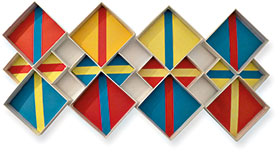 AUSSTELLUNG05.06.2013 - 12.07.2013Johann Türck gesammelte werke & anderes - assemblagen und objekte Vernissage: Donnerstag, den 6. Juni 2013, 19 Uhr Finissage: Samstag, den 13. Juli 2013, 11-15 Uhr Das sagt die Presse: "Zwei Zugangsweisen zum Objekt lassen sich ... beobachten: Zum einen die Verwendung der Fundstücke als grafische Elemente, ihrer ursprünglichen Verwendung entrissen. So sind zerlegte Computerdisketten nur noch als Quadrate und Kreise, als Farb- und Formsprache erhalten. Sie zeugen einerseits von einem strengen Formalismus, andererseits auch von spielerischer Freude an der Variation mittels kleiner Veränderungen. Ähnlich, wenn auch mit dem Thema "Vergänglichkeit" deutlicher verquickt, erscheint das per Heißluftpistole erzeugte Relief aus Buttermilch-Bechern, das im Wechsellicht erstrahlt. Zurück |