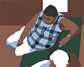 AUSSTELLUNG09.01.2014 - 08.02.2014Heinz Kneile Urlauber-innen - Mehrfarbenserigrafien, Farbcollagen Vernissage: Donnerstag, den 9. Januar 2014, 19 Uhr Schon im Mai zieht es viele Rentner, vor allem aus Großbritannien auf die Ferieninsel Menorca. Sie werden in Busse verladen und über die Insel verteilt, besonders in den Inselwesten. Angekommen füllen sie tagsüber die Sonnenterrassen, indem sie bequem in Korbschaukelstühlen sitzen, sich möglichst wenig bewegen, dabei lesen, schreiben, schlafen oder sich unterhalten, bis es Zeit wird, zum Dinner zu gehen. Schon eine halbe Stunde vor der Restaurantöffnung stehen sie ordentlich englisch in der Schlange, um hinein zu dringen, den bevorzugten Platz zu erobern und dann das Büffet zu stürmen. Der Künstler ist bei der Vernissage anwesend und gibt gerne Auskunft über seine bildnerischen Verfahren. Öffnungszeiten der Galerie: Das sagt die Presse: "Ein Hauch von Sommerurlaub schwebt derzeit durch die Galerie der Künstlergruppe L‘art pour Lahr in der Obertorstraße. (…) In origineller Weise gelingt es Kneile, die menorquinisch-südlichen Lichtverhältnisse farblich umzusetzen, weiß steht für das grelle Sonnenlicht. Zudem wählt er für die Darstellung der durchweg korpulenten UrlauberInnen gerne die Blickperspektive von schräg oben, den Beobachterblick einnehmend, der selbst nicht erkannt werden will. So sitzen sie nichts von Beobachtung ahnend, einfach Siesta haltend, lesend oder wie hingegossen und sonnenbadend in ihren Liegestühlen und Sesseln oder auch am Tisch. Die Perspektive macht die Arbeiten, die durchweg einen erzählerischen, situativen Charakter haben, interessant im Anblick. (…) Eine heitere Ausstellung." Zurück |