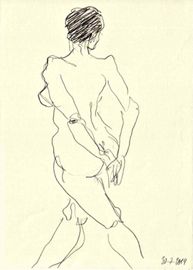 AUSSTELLUNG26.02.2015 - 19.03.2015Armin Bessel, Volker Heinrich, Gabi Höfl-Müller, Heinz Kneile, Anita Macher, Helmut Nitschke, Cindi Ringwald, Ellen Vetter, Tom Wilhelm und Rainer Zimmermann Akte X Vernissage: Donnerstag, 26. Februar 2015, 19 Uhr, mit einer Einführung von Volker Schuchardt Die in der Galerie LPL ausgestellten Aktzeichnungen zeigen eine ganze Bandbreite von Zeichenstilen mit unterschiedlichen Modellposen. Verdrehte Körper, gespannte Muskelpartien, interessante Kopfwendungen oder Gesten verlangen nicht nur vom Modell einiges ab, sondern auch vom zeichnenden Gegenüber. Das sagt die Presse: "Die 40 Zeichnungen (…) zeigen eine Bandbreite unterschiedlicher Zeichenstile. Gekonnt skizzenhaft hingeworfene Bleistiftlinien, teilweise ausgearbeitete, gelegentlich auch mühsam tastende Umrissformen halten Rundungen, Muskelpartien, Kopfwendungen und Gesten des Modells fest, farbliche Akzentuierungen unterstreichen teils die Körperlichkeit. Die Zeichnung entstehe in der Zusammenarbeit zwischen dem Modell, seiner Ausstrahlung und dem Zeichner mit seinen Fertigkeiten, wobei das Modell der "Herr der Pose" sei. Zwischen Künstler und Modell bestünde eine Wechselwirkung, "wenn das Modell schlecht gelaunt ist, wird auch das Bild nichts." Das Modell müsse sich wohlfühlen und seinen Körper lieben. Der nackte Körper sei Symbol des Eros, der Fruchtbarkeit und des Weiterlebens. "Erotik ist schon auch dabei", sagt eine der beteiligten Künstlerinnen. (…) Zehn Zeichnerinnen und Zeichner der Lahrer Aktgruppe (…) zeigen ein breites Spektrum ganz individueller Werke …" Zurück |