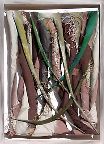 Dickicht, 2008 120 x 80 cm, Stoff, Draht, Papier, Acrylfarben